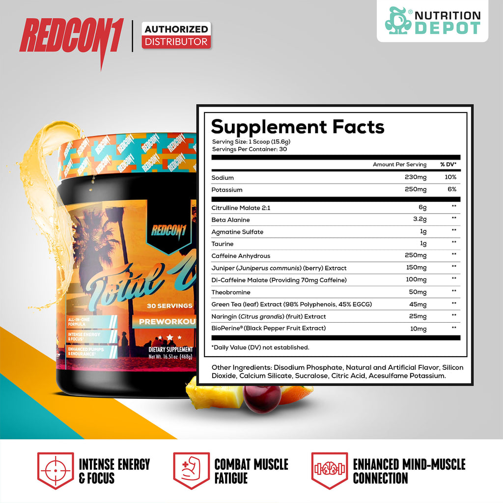 Redcon1 Total War Pre-Workout - Cali Splash 30 Servings กรดอะมิโนเพื่มแรงในการออกกำลังกาย