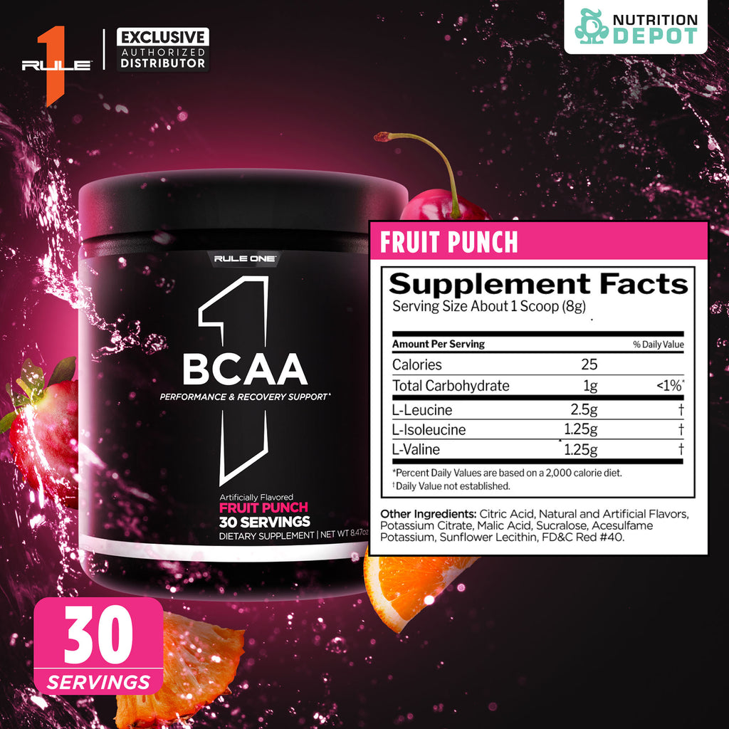 Rule1 Micronized BCAA 30 Servings - Fruit Punch กรดอะมิโนป้องกันการสลายตัวของกล้ามเนื้อ