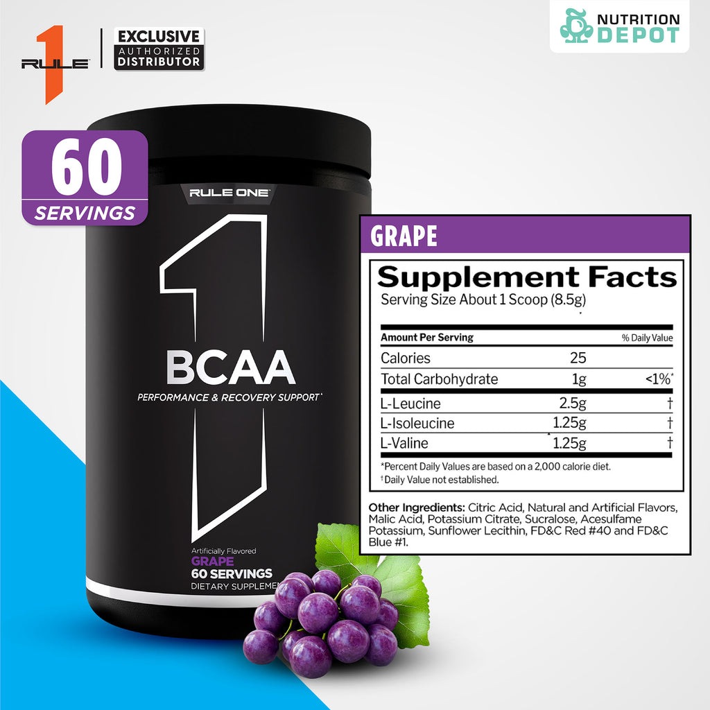 Rule1 Micronized BCAA 60 Servings - Grape กรดอะมิโนป้องกันการสลายตัวของกล้ามเนื้อ