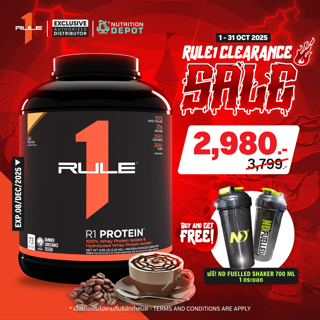 ( BBF 08/DEC/25 )Rule1 Protein 5lb - Café Mocha เวย์โปรตีนเสริมสร้างกล้ามเนื้อ